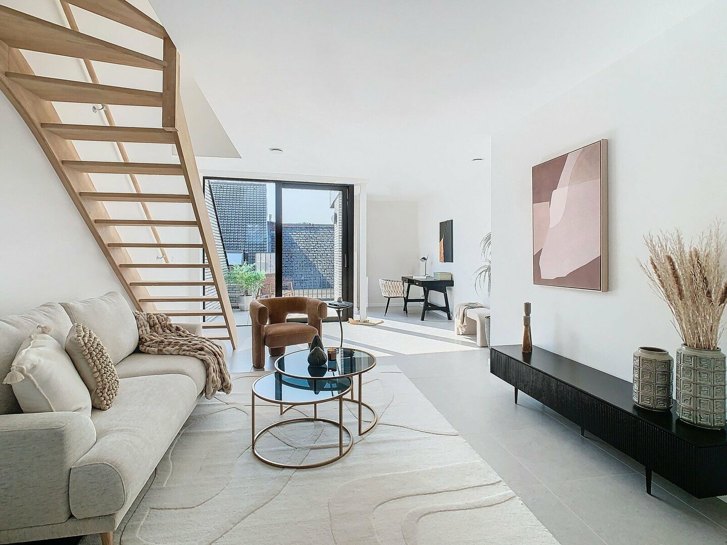 De 6 goed verlichte en stijlvolle appartementen zijn verdeeld over de 3 verdiepingen, allen met een mooi terras waardoor het rustig genieten is temidden van de gezellige drukte.