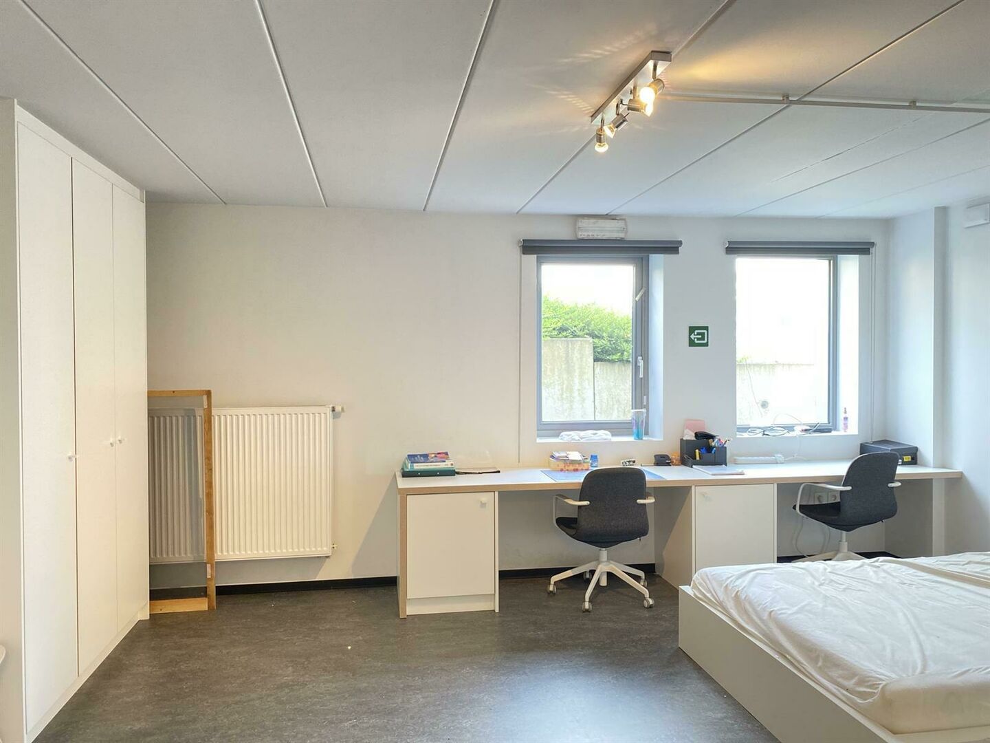 Individuele voorzieningen op de kamer: bed, bureau + bureaustoel, kleerkast, douche, lavabo, internet (wifi), ruimte voor een tekentafel, warm + koud water