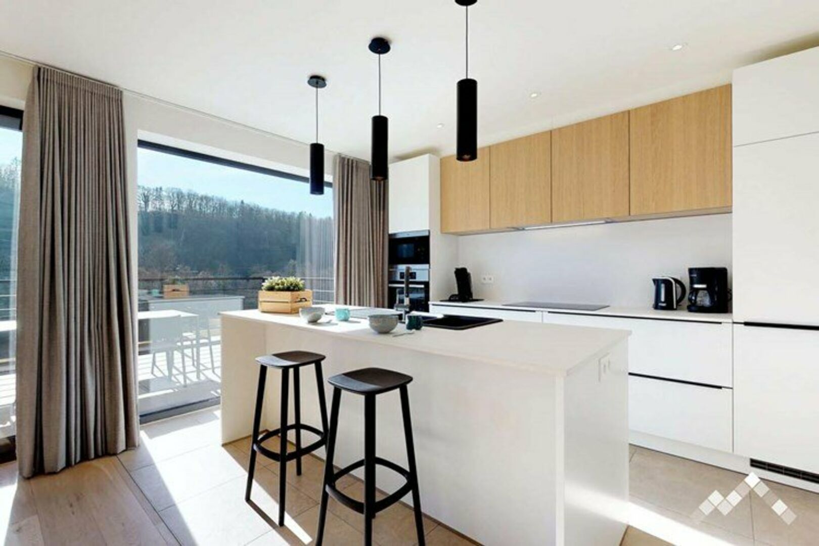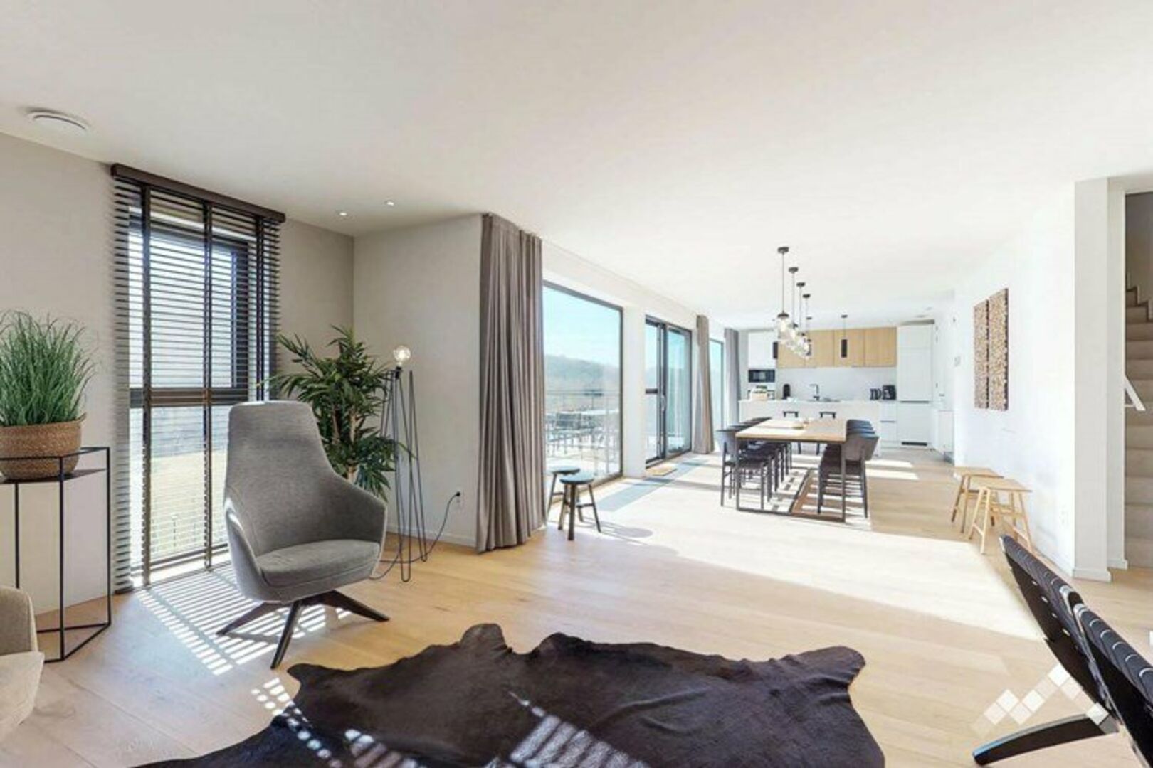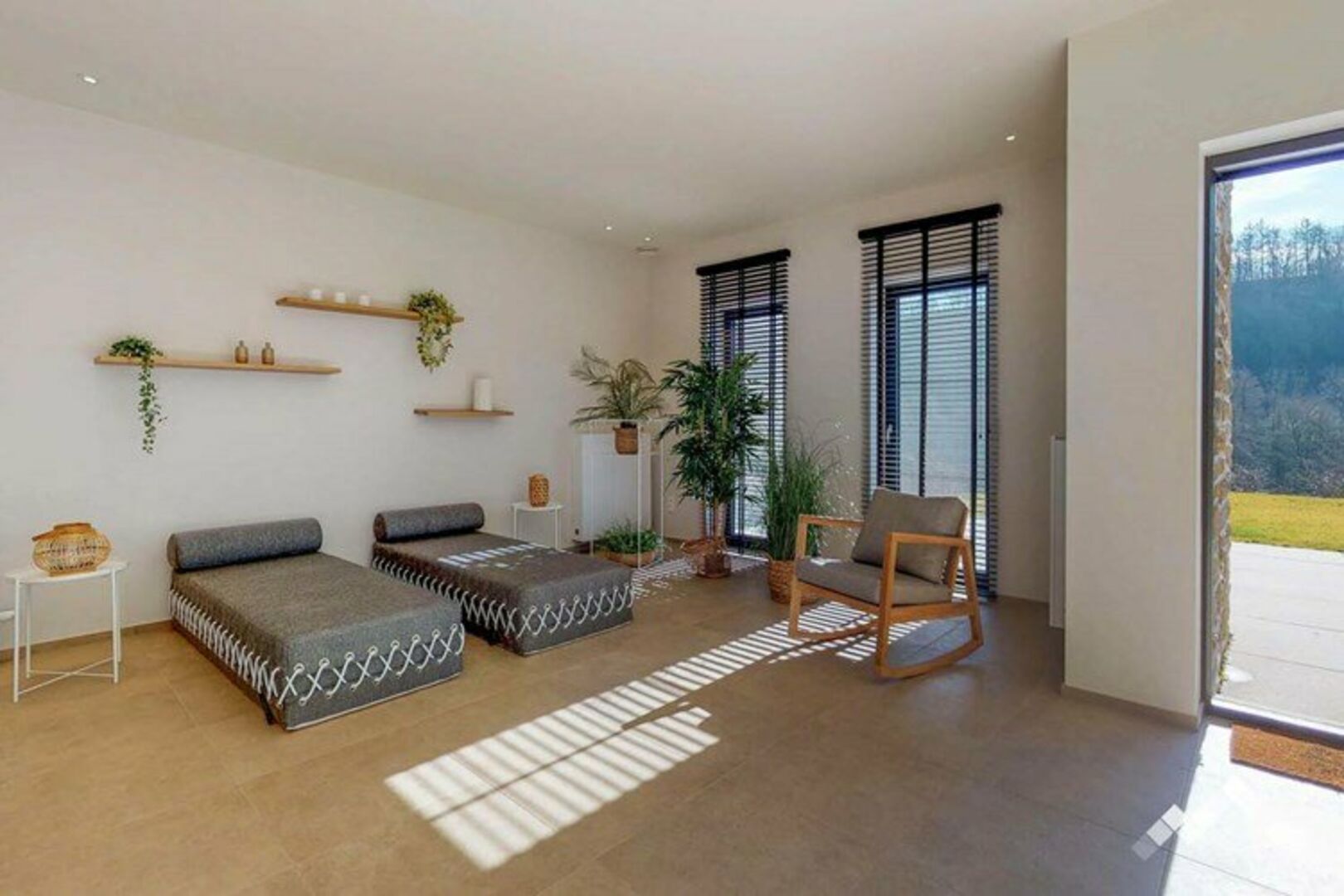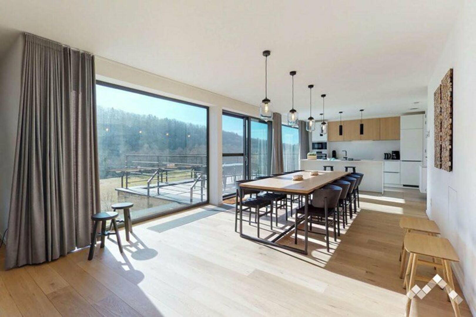 Ruime, comfortabele en stijlvolle vakantiewoning op wandelafstand van Durbuy met sauna, relaxruimte en binnenzwembad met uitzicht over de vallei.