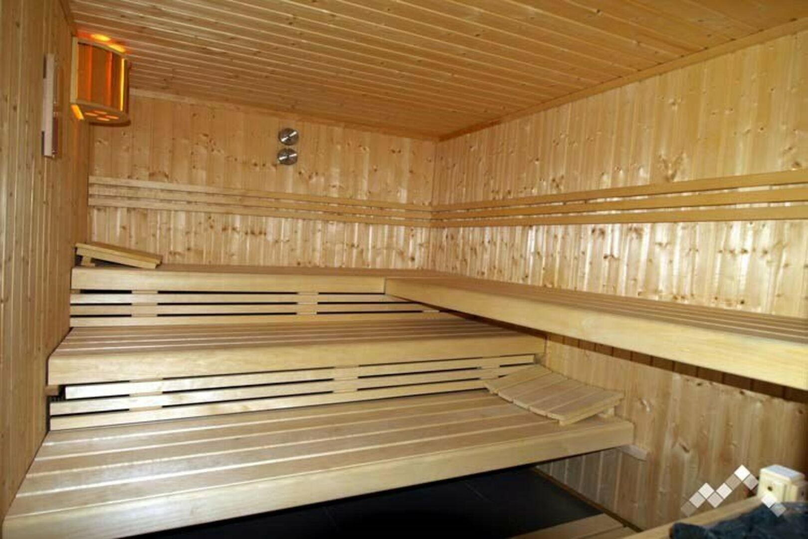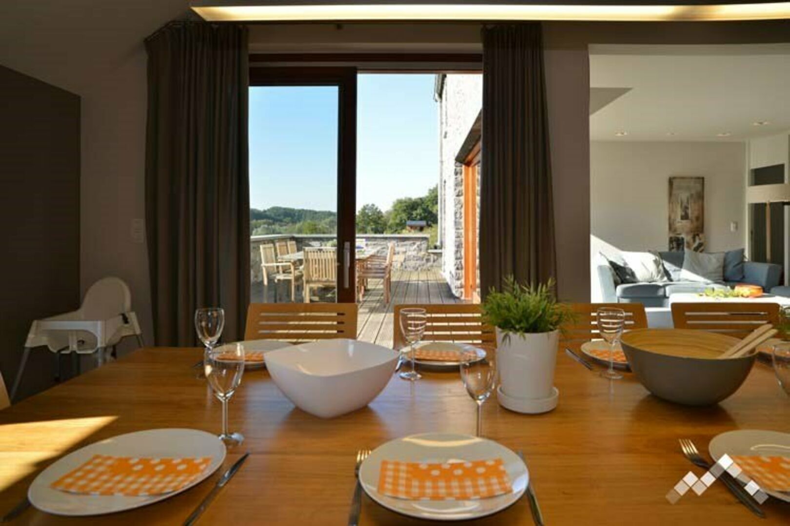 De woning beschikt over 5 slaapkamers voor een totale capaciteit van 10 personen (4 tweepersoonsbedden + 1 stapelbed). Elke slaapkamer beschikt over haar eigen badkamer of douche. Er zijn 5 toiletten in het huis aanwezig. Er is centrale verwarming voorzien in de hele woning en een gesloten haard in de woonkamer. De inrichting is hedendaags, met design meubels, strak en elegant. De wellness ruimte bevat een sauna en jacuzzi. Verder is de woning nog uitgerust met een volledig ingerichte keuken en beschikt het over 2 grote terrassen en een omheinde tuin van 2.000 m². Er is in de tuin een barbecue aanwezig en er is privé parkeerruimte voorzien.